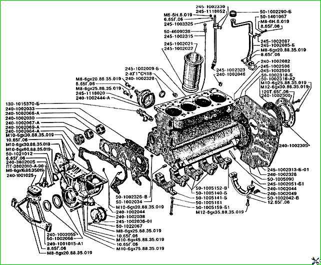 - 245-1002009-Б Блок цилиндров с крышками подшипников и втулками в сборе
