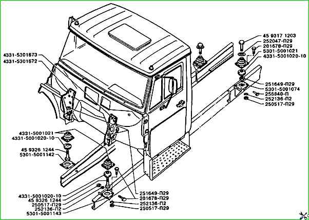 Детали и узлы крепления кабины ЗИЛ-5301 в соответствии с каталогом запасных частей