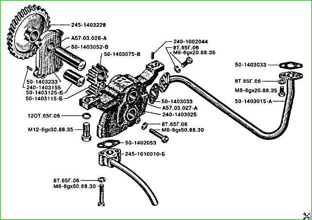 На рисунке представлены места установки деталей и их обозначения по каталогу запасных частей