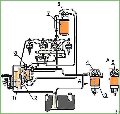 Проворачивание дизеля стартером при незаполненной топливом системе питания запрещено. Топливный насос высокого давления выйдет из строя.