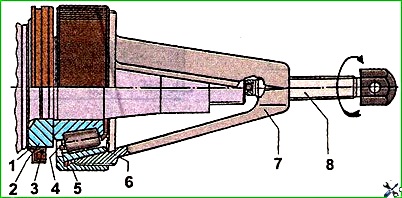 Спрессовать внутренний подшипник 4 с помощью специального съемника (рис. 5).