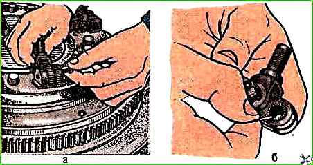 На выступы нажимного диска положить теплоизолирующие шайбы (рис. 3а), а на шайбы поставить нажимные пружины (см. рис.1е).