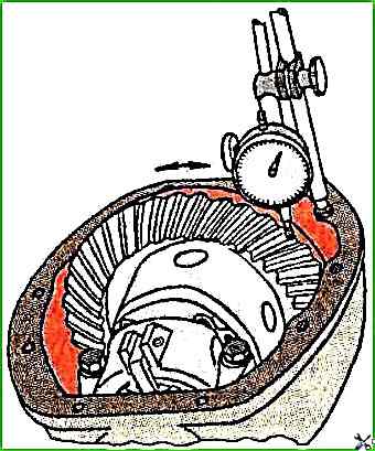 Зазор измеряют индикатором, установленным на широкой части зуба (рис. 2).