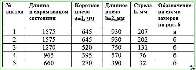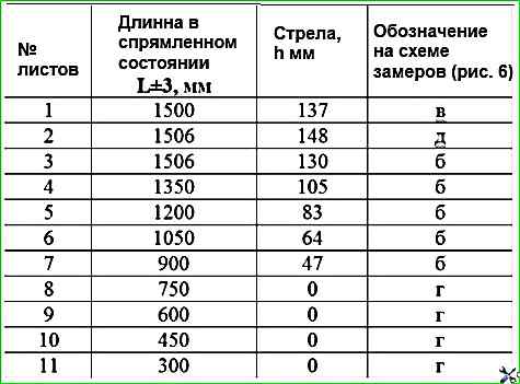Размер «h» дан после обработки дробью и осадки рессоры.