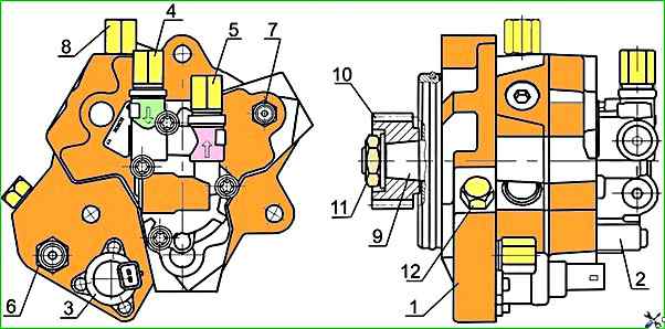 На корпусе ТНВД закреплены топливоподкачивающий насос 2, имеющий привод от вала 9, и электромагнитный регулятор давления 3.