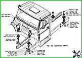 Главный тормозной цилиндр соединен двумя шпильками в один узел с двуполостной тормозной камерой, которая является пневматическим усилителем, и установлен на кронштейне на передней панели кабины под капотом автомобиля.